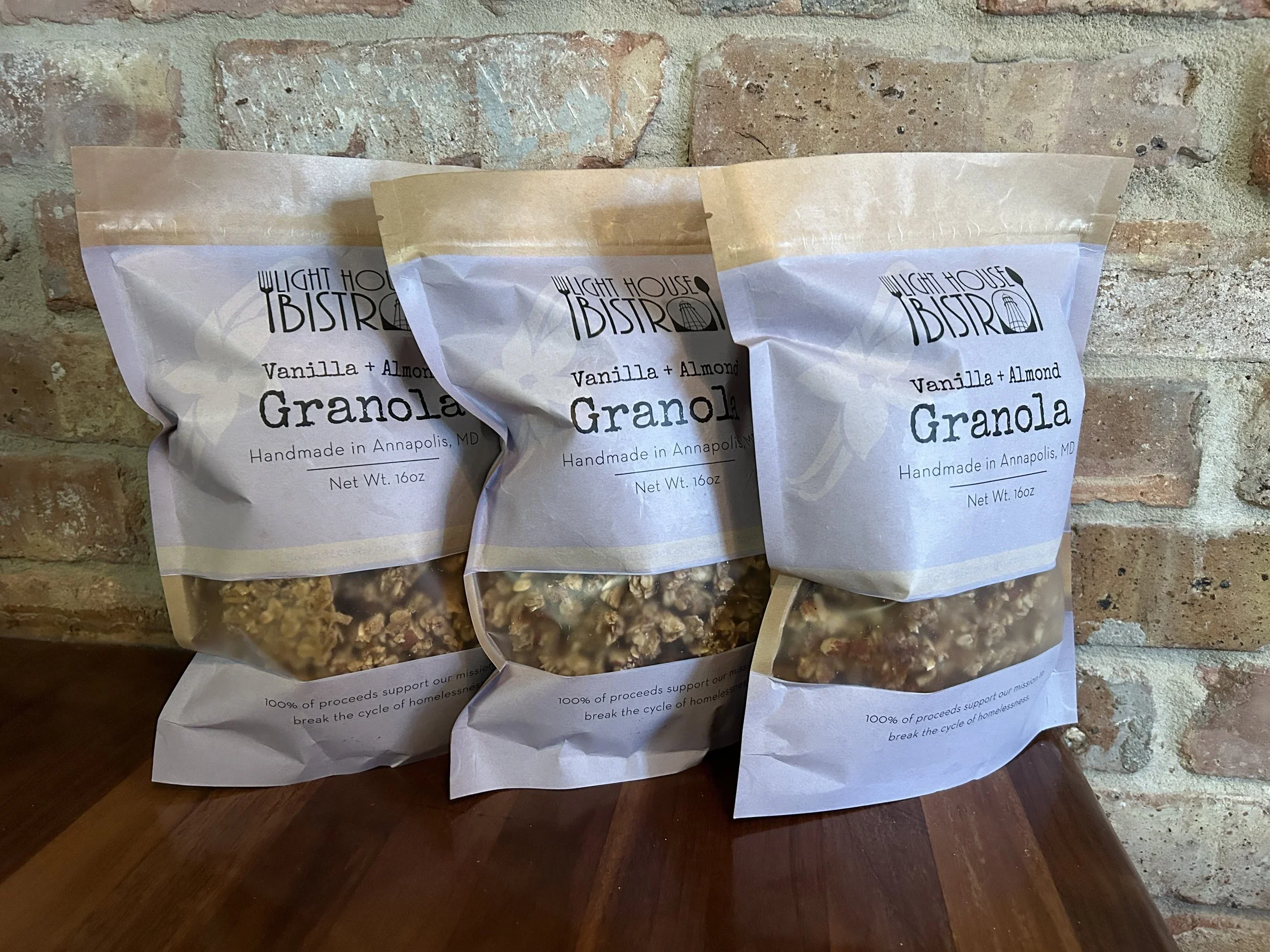 Granola Gingersnap Granola, 1 pound bag $12.00 Purchase Added! Cranberry-Pecan Granola, 1 pound bag $12.00 Purchase Added! Vanilla Almond Granola, 8 oz bag $8.00 Purchase Added!